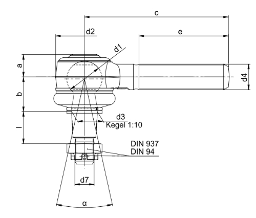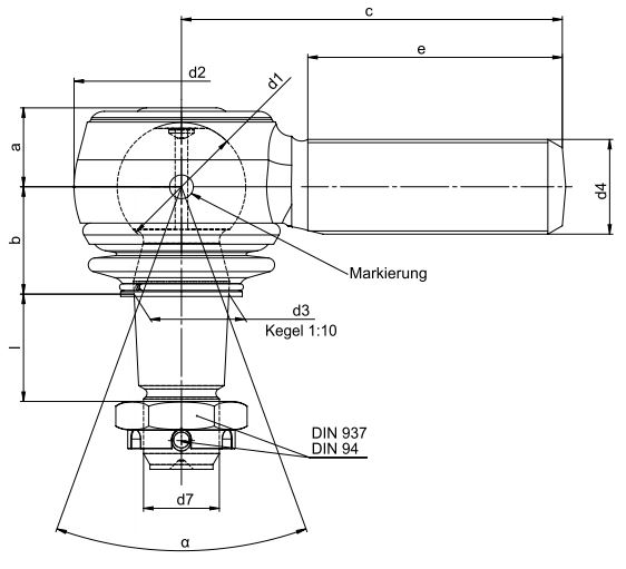 Bestell-Nr. | d1 | a | b | c | d2 | d3 | d4 | d7 | e | l | α | kg/Stück | |