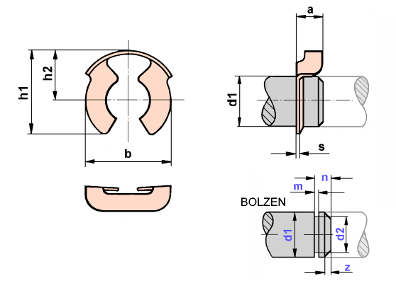 KL-Sicherungen für Bolzen und Welle | Abmessungen in mm |